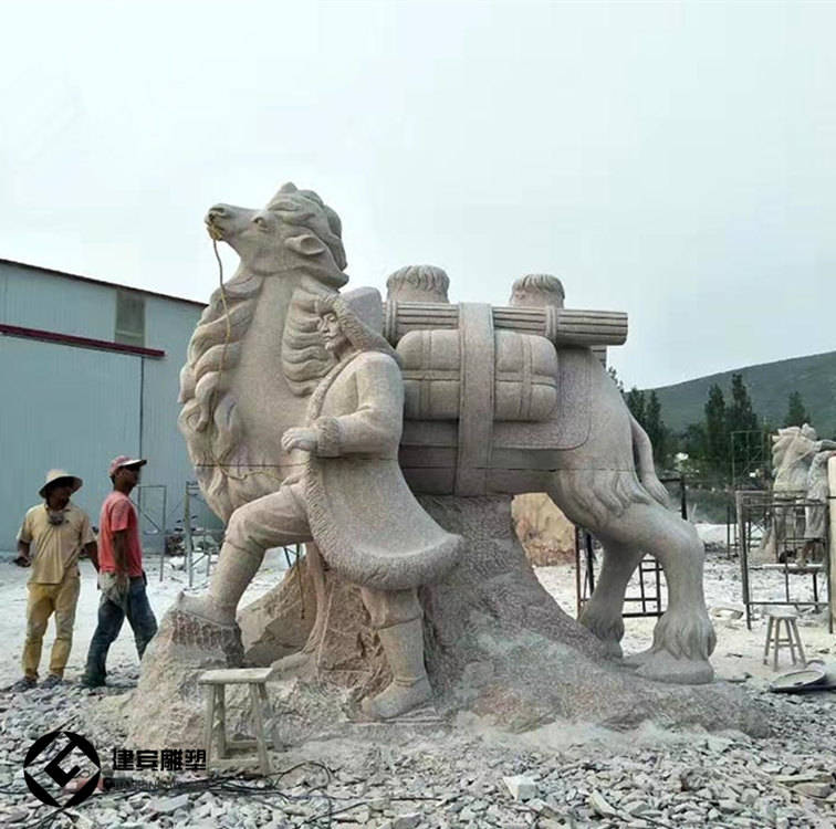 石雕駱駝,不僅僅是對現實生活中駱駝形象的再現,更是藝術家們心中理想化、情感化的象征。它們有的身姿矯健,昂首挺胸,仿佛在沙漠中奔騰馳騁;有的則安靜溫順,低頭覓食,仿佛在訴說著沙漠的寂靜與荒涼。這些石雕駱駝,或站或臥,或行或止,無不流露出一種堅韌與毅力的氣質,令人為之動容。