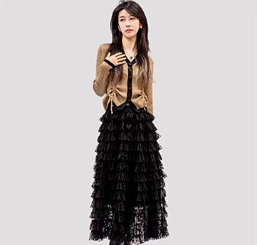 溫碧霞代言IRENENA服裝品牌半身蛋糕裙荷葉邊蕾絲蓬蓬長(zhǎng)裙