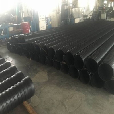 HDPE鋼帶增強螺旋波紋管全稱為:鋼帶增強螺旋波紋管(Steel Rein forced Polyethylene Corrugated Pipe),是用連續鋼帶壓成近似“U”形的螺旋鋼帶,再將其纏繞在內外兩層熱熔接的聚乙烯間而形成的。是借鑒好的金屬塑料管材復合技術,而開發的一種HDPE與鋼帶熔融而成的增強型管道,產品執行CJ/T225-2011標準,管壁結構有三個層次構成,以螺旋纏繞成型的高*度鋼帶為增強體,以HDPE為基體,采用好的制造工藝,將鋼帶與PE融合成一體,使其既具有塑料管的柔韌又具備了金屬管的剛性,環剛度*SN16,適合大、深的市政工程應用。目前生產管材口徑從DN300mmDN3000mm,環剛度都保持在8KN/m2以上,比水泥管和其它塑料管重量輕、強度高。