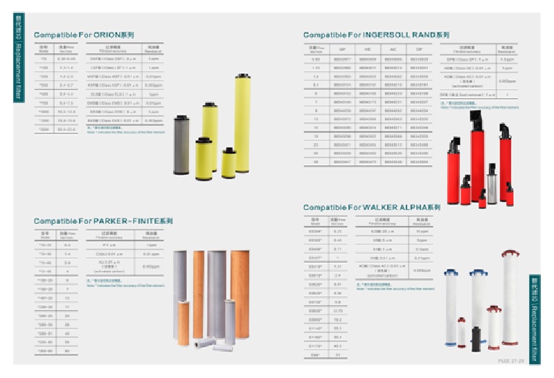英格索蘭空壓機(jī)配件替代英格索蘭精密過濾芯測(cè)試標(biāo)準(zhǔn):