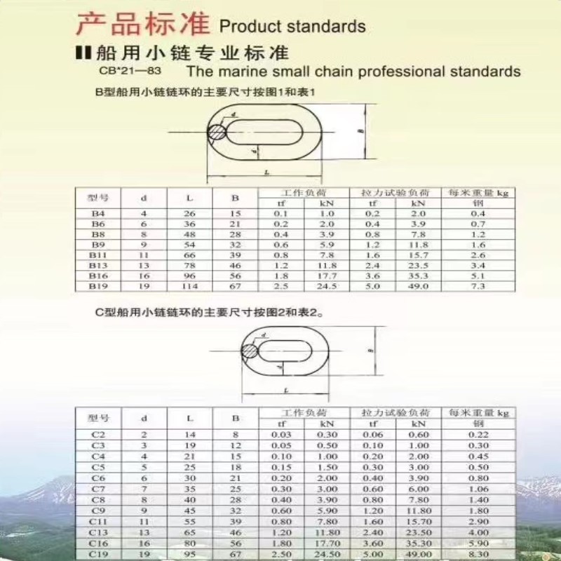 • 生產CB*21-83船用鏈條 A2.6 B8 C8 316L不銹鋼鏈條