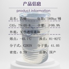 乙腈是濟南世紀通達主打銷售產品之一,原廠貨源,貨量充足,量大價優,質量可靠,歡迎采購。由于近期商品波動性大,網頁價格只作為參考價格,下單前請咨詢具體價格及庫存。謝謝合作!18615186228