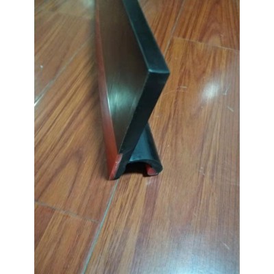 防溢裙板解析聚氨酯防裙板|皮帶機裙板|導料槽裙邊價格|皮帶擋板廠家防溢裙板的安裝解析,多護防溢系統,Y型固定膠塊,裙邊主體采用一體熱硫化方式制成,結構緊湊有效,結實。 T型固定膠塊可根據客戶要求在制作的過程中去掉,以適應過去老的安裝方法。 1.采用多護三道密封條進行密封,比普通單塊橡膠的防溢裙邊效能提高比雙道密封的防溢裙邊多一個密封空間, 2.采用天然橡膠添加半凝固潤滑劑的方式,解決了以往防溢裙邊的同時,容易損傷皮帶的難題。該材質質地柔韌,彈性優良,避免了聚氨酯(PU)不耐水的缺點,同時不損傷輸送帶。    3.防溢裙邊的主體部分為黑色,采用天然橡膠和丁苯橡膠混煉而成,在保持挺括的基礎上增加彈性,使紅色的多護密封條緊密的貼服在輸送帶上,甚至當多護系統達到使用壽命后能夠繼續履行防溢裙邊的職責,降低使用客戶的的經濟效益?! ?4.多護防溢橡膠裙邊的安裝方式特別方便,只需確認安裝位置后,將專用固定槽采用焊接,鉚接,自攻螺絲等任一方式固定在落料槽外邊,再將多護防溢裙邊背面的T型膠塊滑入固定槽即可。    5.多護防溢系統,Y型固定膠塊,裙邊主體采用一次性一體熱硫化方式制成,結構緊湊有效,結實。背面的T型固定膠塊可根據客戶要求在制作的過程中去掉,以適應過去老的安裝方法。聚氨酯防溢裙板的配件防溢裙板與夾持器配套使用,一米夾持器含兩個夾持器和一米角鋁。用產品回饋客戶,客戶滿意是我們不懈的追求!如需特殊規格,請出示圖紙,可根據客戶要求定做各種規格的聚氨酯防溢裙板