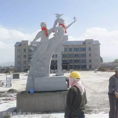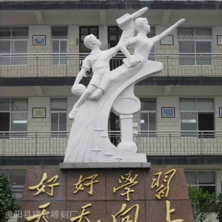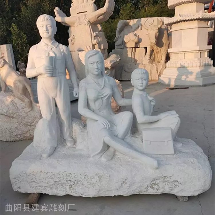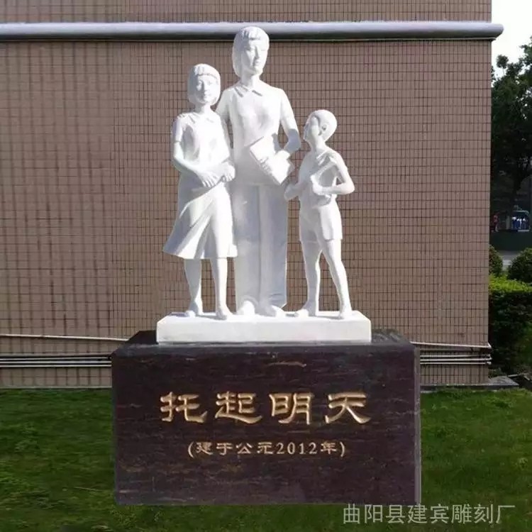 曲陽石雕廠生產石雕校園人物雕塑,為客戶免費提供石雕校園人物圖片。校園人物雕塑正逐漸地成為一所學校精神文明建設的重要體現,校園人物雕塑不光是裝點了校園景色,它往往蘊含了豐富的意義。一座校園人物雕塑,它或是紀念了學校一段難忘的歷史,或是反映了當前的校園文化。