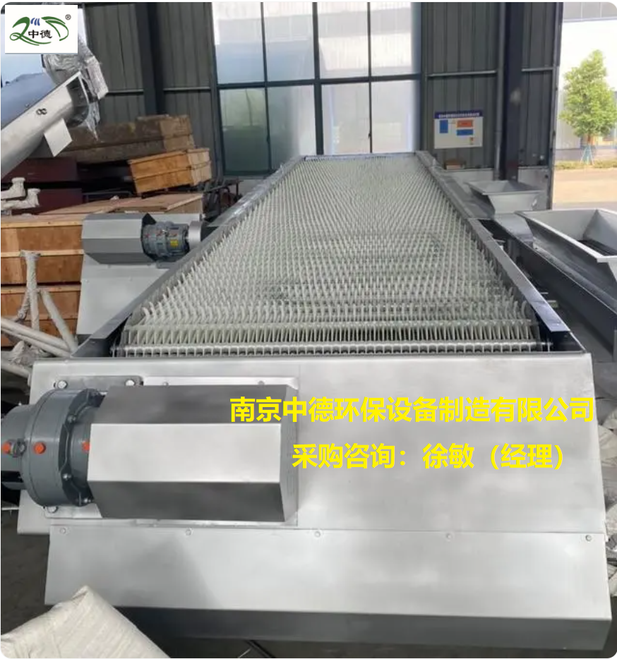 是由尼龍或不銹鋼制成的特殊形耙齒,按一定的排序裝配在耙齒軸上形成封閉式耙齒鏈,其下部安裝在進渠水體中。當傳動系統帶動鏈輪作均勻定向旋轉時,整個耙齒鏈便自上而下的運動,并攜帶固體雜物從液體分離出來,流體則通過耙齒的柵隙流過去。整個工作狀態連續進行。