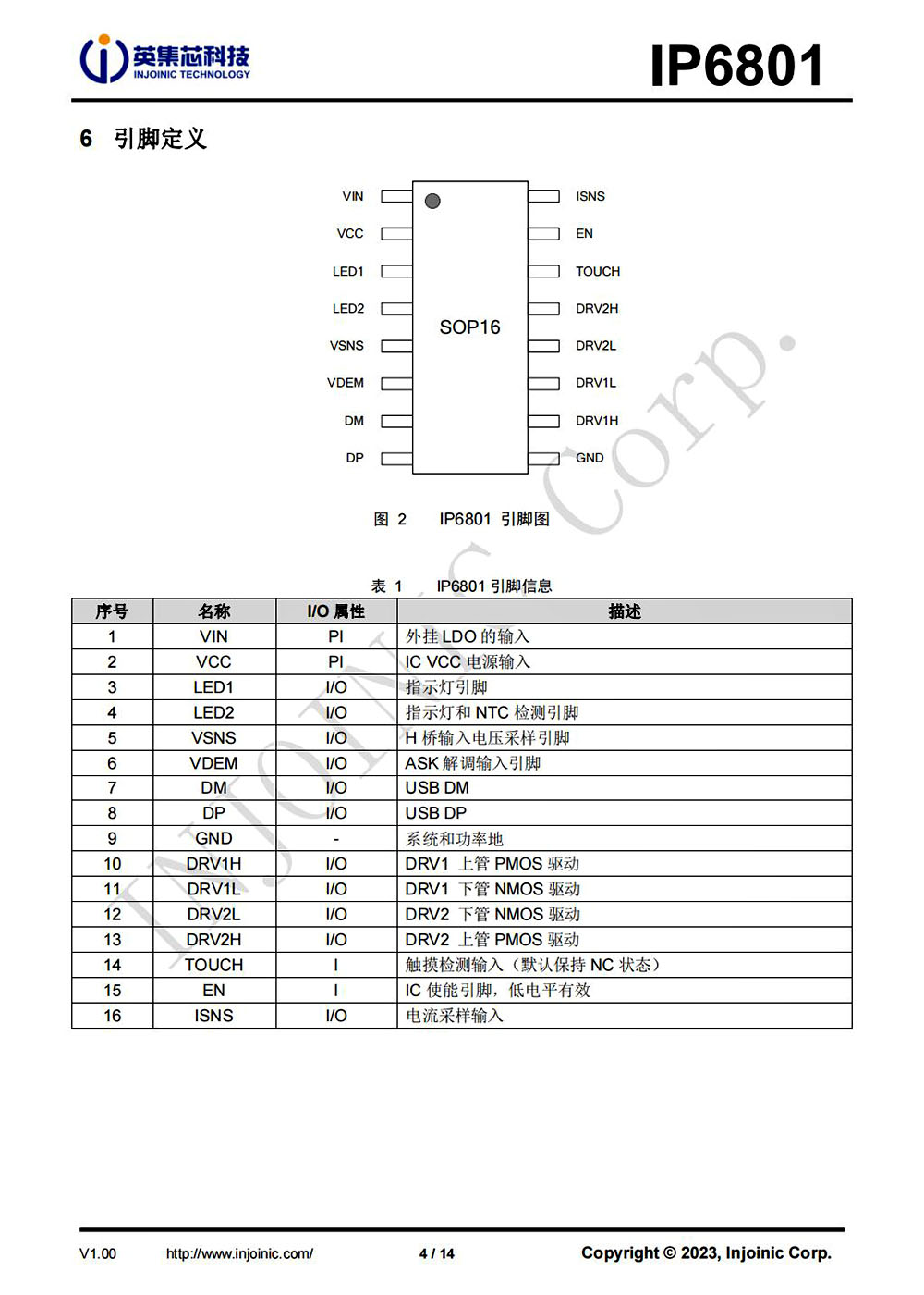 IP6801 是一款高集成度,符合WPC Qi標準的無線充電發射控制芯片。芯片內部集成H橋驅動模塊、ASK通訊解調模塊、適配器快充Sink協議等必要的無線充電資源。