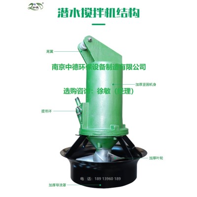 低轉速潛水攪拌機所需的配套功率是按容積大小、攪拌液體的密度和攪拌深度而確定的,根據具體情況采用一臺或多臺攪拌機。