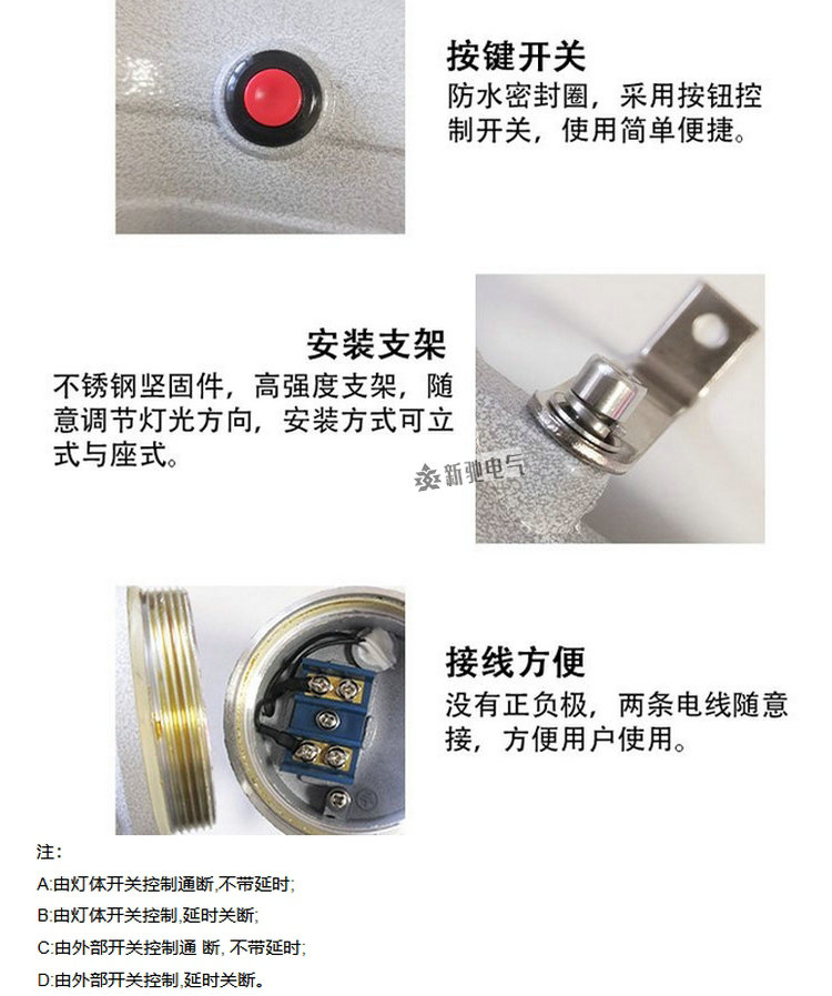 1.鑄鋁合金外殼,表面噴塑壓鑄成型,結(jié)構(gòu)緊湊外形美觀。燈體采用高強(qiáng)度鋁合金材料,表面采用靜電噴涂技術(shù),使燈具具有防水、防塵、防腐等三防特性確保燈具在各種惡劣環(huán)境能可靠工作,不受環(huán)境影響
