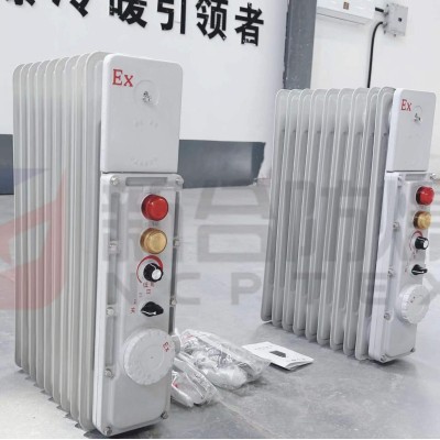 防爆電暖器發(fā)熱翅片內(nèi)部充填高導(dǎo)熱油,導(dǎo)熱油被加熱后,通過內(nèi)部通路對流循環(huán),升溫均勻、迅速。