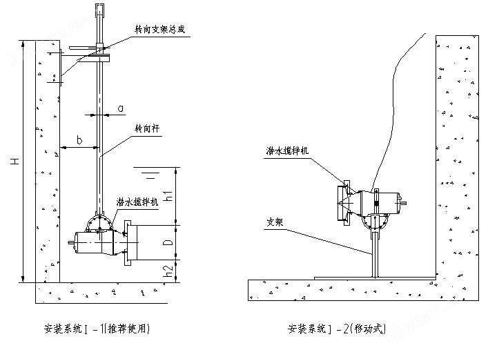 潛水?dāng)嚢铏C(jī)必需*潛入水中工作;不能在易燃易爆或有強(qiáng)腐蝕性液體的環(huán)境中工作;鋼膨脹螺栓須按要求固定,安裝完畢后,必須將電纜拉緊固定好.
