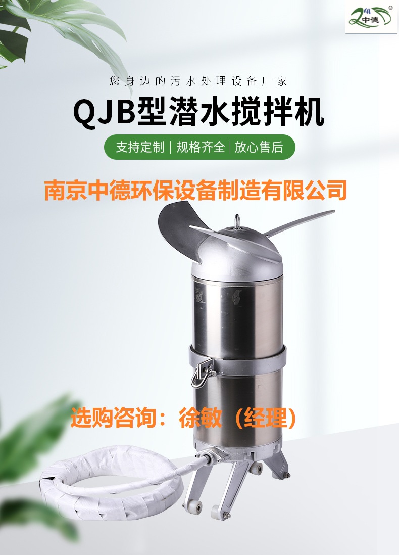 QJB型不銹鋼潛水攪拌機是直聯的沖壓式結構,采用多極電機,葉片經沖壓成型,精度好,效率高,葉輪可不同葉片角度。殼體全部采用不銹鋼材質制造,外形美觀流暢,具有很想的耐腐蝕性。