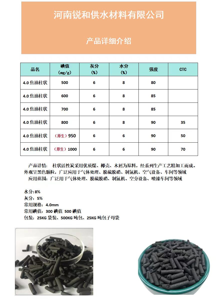 銳和原生炭高碘值CTC70柱狀4mm活性炭