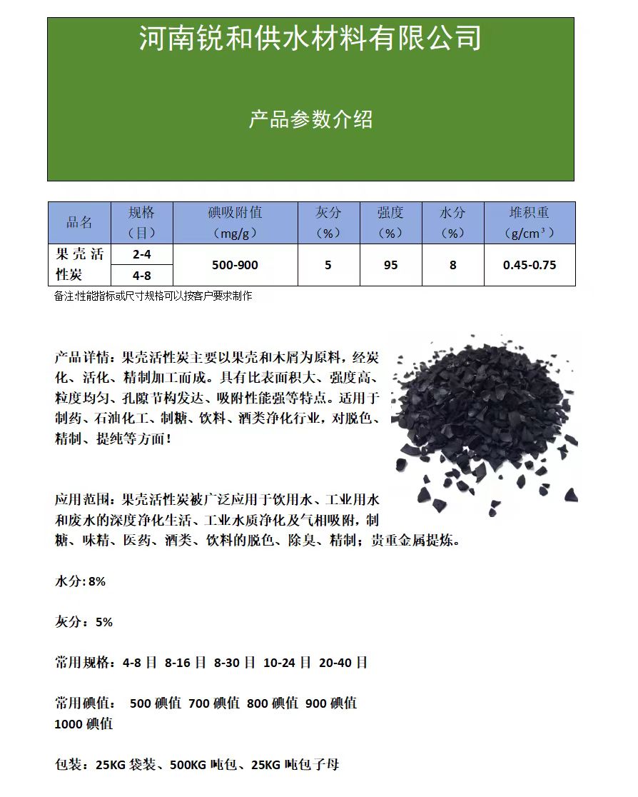 更新信息 快采購網供應商河南銳和供水材料有限公司供應銳和2-4果殼活性炭 污水處理活性炭工業脫色提純,為您提供詳細的產品報價、參數、圖片等商品信息,本產品于2025-10-29 09:14更新,主要更新內容為:產品類別、產品參數、產品價格、產品圖片等信息。如需進一步了解銳和2-4果殼活性炭 污水處理活性炭工業脫色提純詳細信息,請與廠家直接聯系,并說明是在快采購網看到這條商機的。