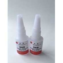 2:點少量568膠水在待粘面,再粘合另一面產品壓緊數秒即可松手。膠水的用量以粘合后形成一層薄膜為宜,膠量太少粘力不夠,膠量太多固化慢
