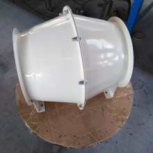 GXF型斜流風機,其葉輪輪轂為錐形,輪轂進口直徑相對較小,使子午上面的氣流加速,避免了葉輪輪轂與后導葉輪轂有較大凸臺所造成的氣流分離,從而使風機可獲得率和低噪聲。由于風機流道中的氣流軸向速度增大,促使驚訝梯度減小,避免了氣流脫離,得到了較高的壓力系數。