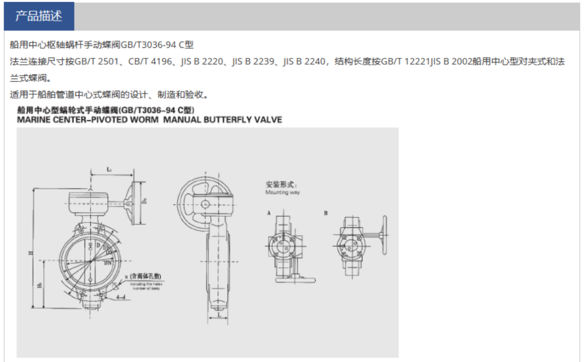 船用中心樞軸渦輪手動蝶閥GB/T3036-94 C型