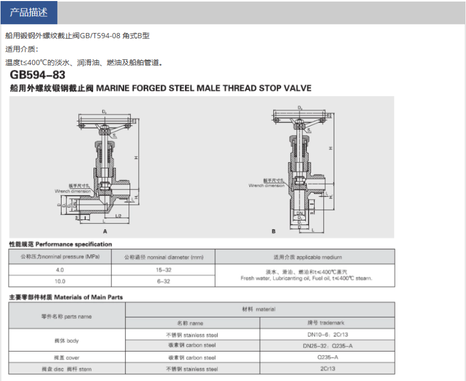 船用外螺紋鍛鋼截止止回閥GB/T1241-83