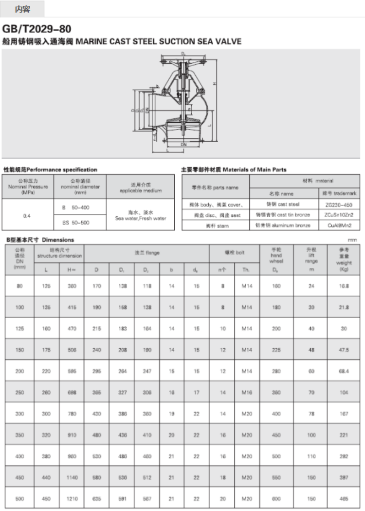 鑄鋼吸入通海閥GB/T2029-1980