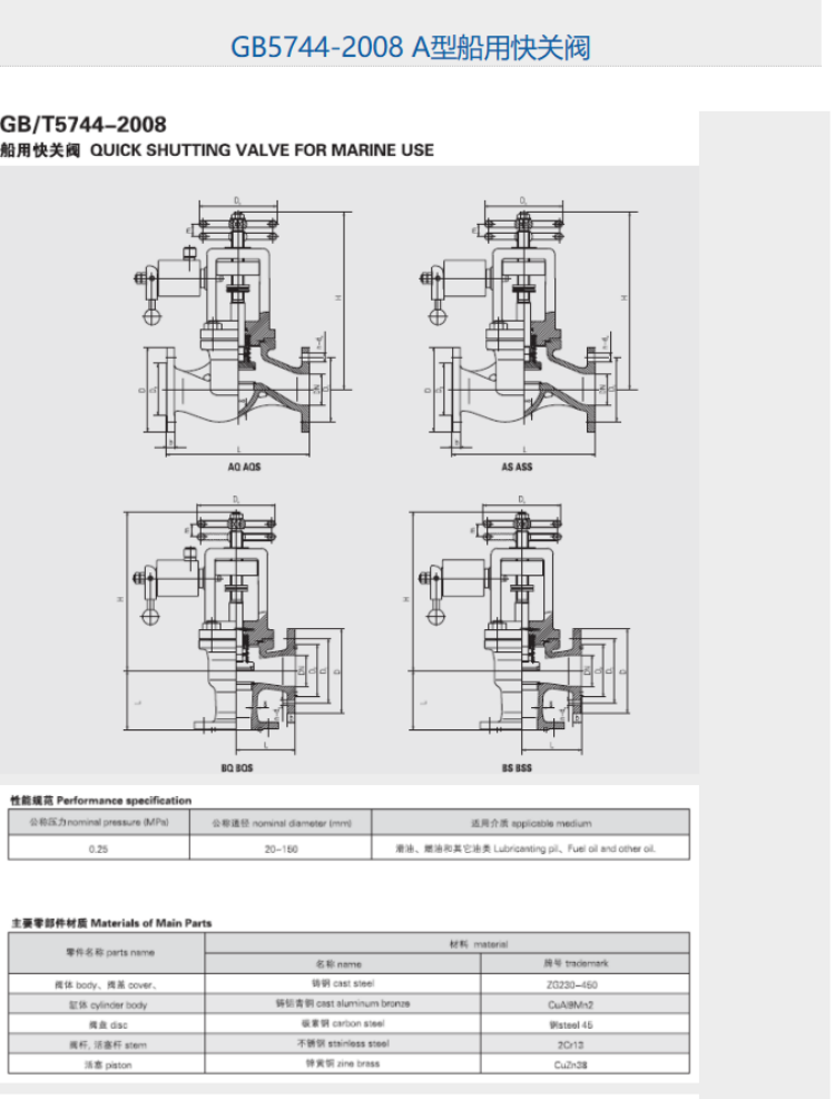 船用快關閥A型 GB/T5744-2008