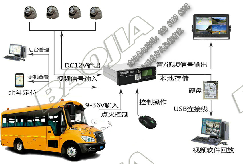 校車遠程四路視頻監控系統