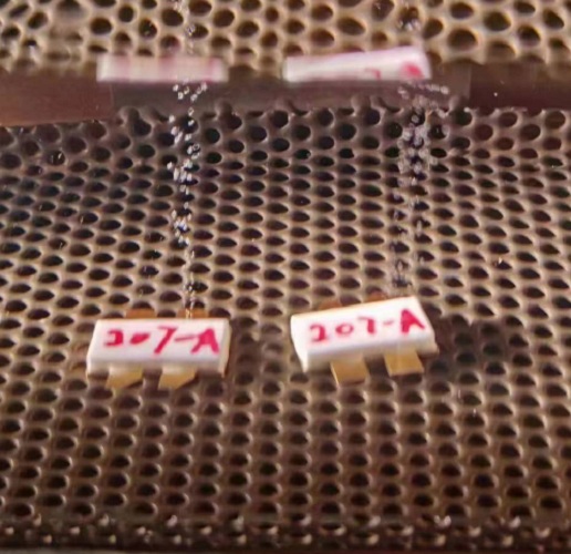 以上做完老化后必須要保持產品的密閉性(膠水是用來粘接陶瓷蓋子和金屬框架,空腔產品),氟油測試條件:在125度氟油里泡1分鐘,然后看有沒有漏氣