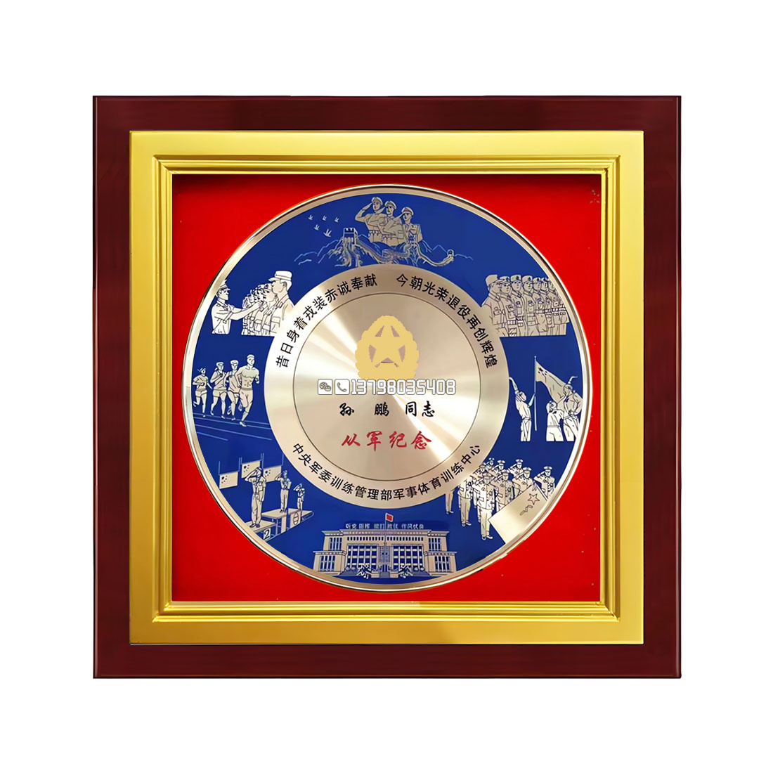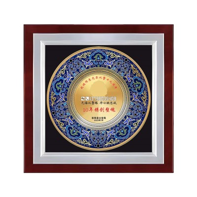 • 退休紀念品景泰藍定制盤獎盤教師光榮離休圓形獎杯訂制