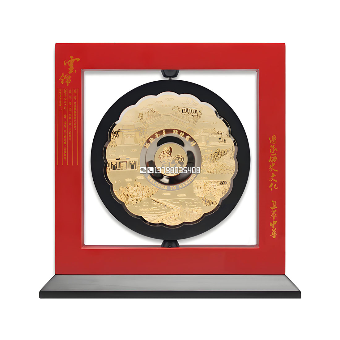 退休紀念品景泰藍定制盤獎盤教師光榮離休圓形獎杯訂制高級銅擺件