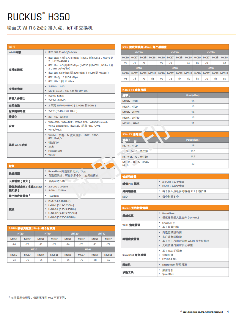 • RUCKUS H350墻面式AP,高性能室內Wi-Fi6解決方案,輕