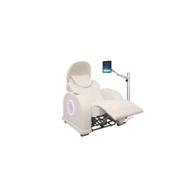 扶手兩側圓形氛圍燈圈;內置碳纖維加熱墊,背部溫熱舒適控制整個椅子電源開啟;控制沙發角度調節(伸展與收縮);控制頭罩打開與閉合;控制靠墊溫度加熱,溫度三擋可調;一鍵復位,所有角度恢復原始狀態;