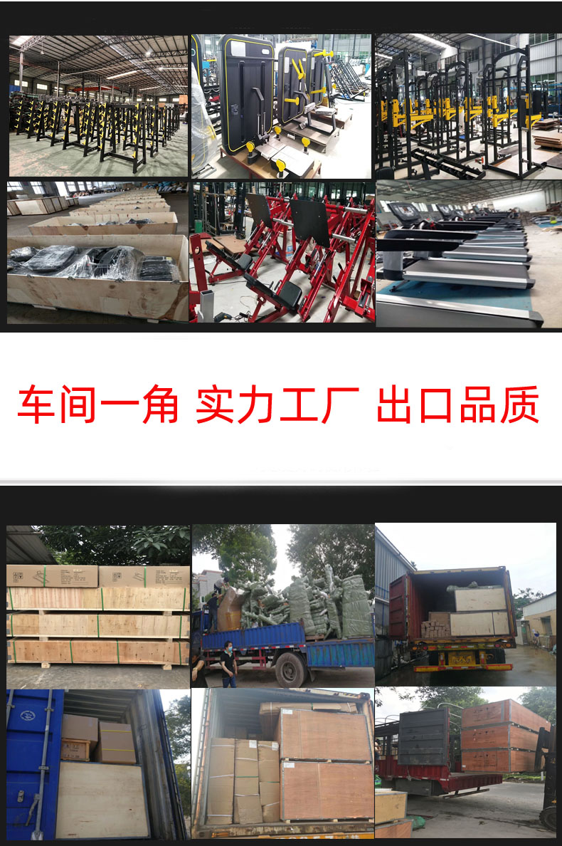 產品說明:五人同時訓練互不干涉,三組配重分別是蹬腿功能一組配重1272KG、前推功能+背拉+高拉功能一組配重954KG、夾胸+低拉功能一組配重954KG、另有引體向上+雙杠功能、和扭腰盤功能、前推功能多角度可調軸承結構,配背拉座位高低可調。夾胸功能軸承結構座位高低可調,帶踢腿功能和低拉功能。蹬腿功能靠墊可調節高配重。扭腰盤帶安全扶手。雙杠可折疊,帶引體向上功能