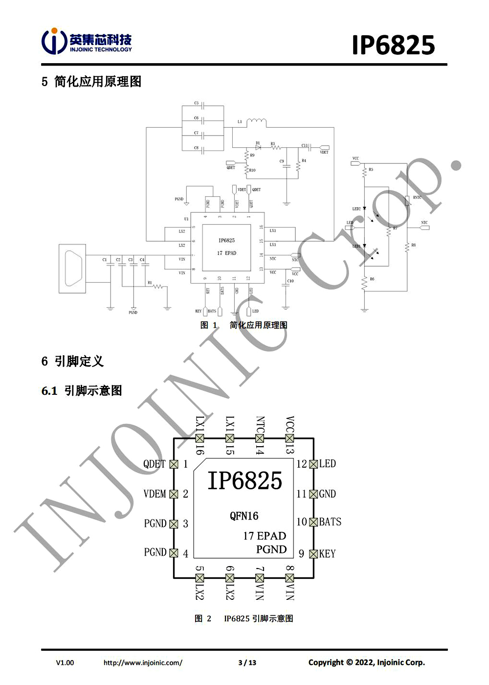 英集芯IP6825極簡BOM高集成5W輸出無線充發射控制方案SOC芯片