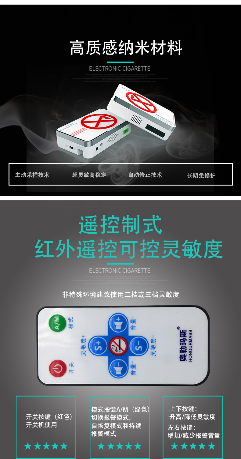• 奧勒瑪斯香煙煙霧探測器 禁煙控煙衛士 高靈敏煙霧報警