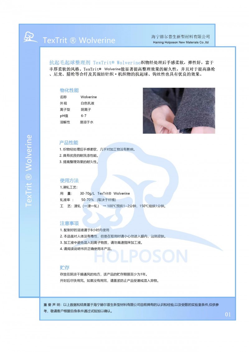 抗起毛起球整理劑HOLPOSON?Wolverine