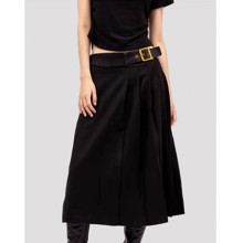 IRENENA女裝溫碧霞自創品牌時尚呢子半身裙黑色百褶休閑裙