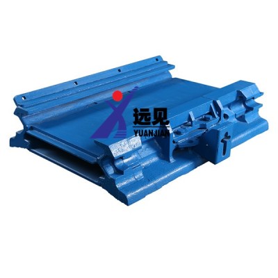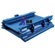 1.5米中部槽采用鑄焊結(jié)構(gòu),鑄造鏟板槽幫,擋板槽幫通過中板、底板焊接為一體。中部槽之間通過啞鈴銷聯(lián)接。