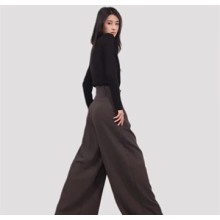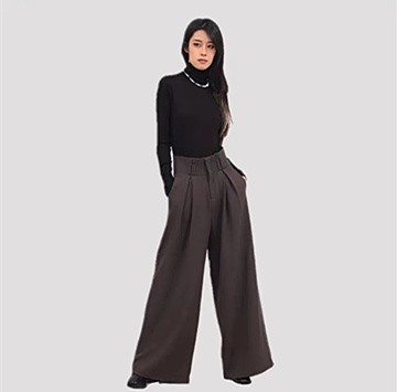 IRENENA品牌采用了不易皺、垂感強的材質(zhì),這樣的面料不僅易于打理,而且穿著起來更加舒適。即使在長時間的工作或活動中,也能保持褲型的整潔與優(yōu)雅,不會因久坐或活動而出現(xiàn)尷尬的褶皺,非常適合忙碌的現(xiàn)代都市女性。在設計上,這款闊腿褲采用了寬松的褲腿設計,不僅為穿著者提供了充足的活動空間,而且還能很好地修飾腿型,讓每一位女性都能自信地展現(xiàn)自己的風采。