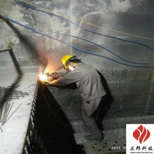 1、在設(shè)備表面上焊接龜甲網(wǎng),龜甲網(wǎng)采用電弧焊焊接,每個(gè)接觸骨架空格內(nèi)雙面焊接,焊點(diǎn)間距約25毫米。其焊點(diǎn)抗拉強(qiáng)度平均值:380Mpa抗壓強(qiáng)度平均值:560Mpa。