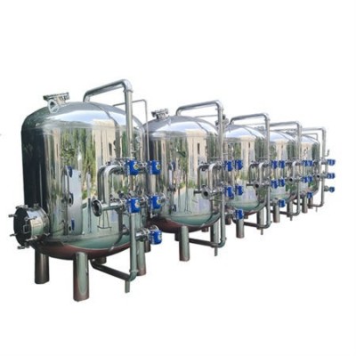 在壓力下,把濁度較高的水通過厚度的粒狀或非粒的石英砂過濾的截留除去水中的懸浮物、有機(jī)物、膠質(zhì)顆粒、微生物、嗅味等,達(dá)到降低水濁度、凈化水質(zhì)的一種過濾設(shè)備。