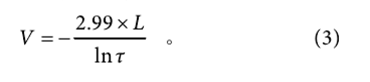 聯(lián)立式(1)、(2)兩式即可推導(dǎo)出能見度 V、光學(xué)路徑長度L、透過率τ三者之間關(guān)系:
