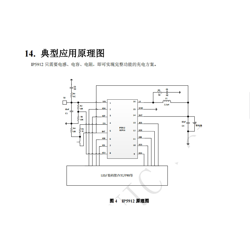 綜上所述,英集芯IP5912是一款功能豐富、集成度高、低功耗且適用于多種智能電子設備的電源管理和控制芯片。