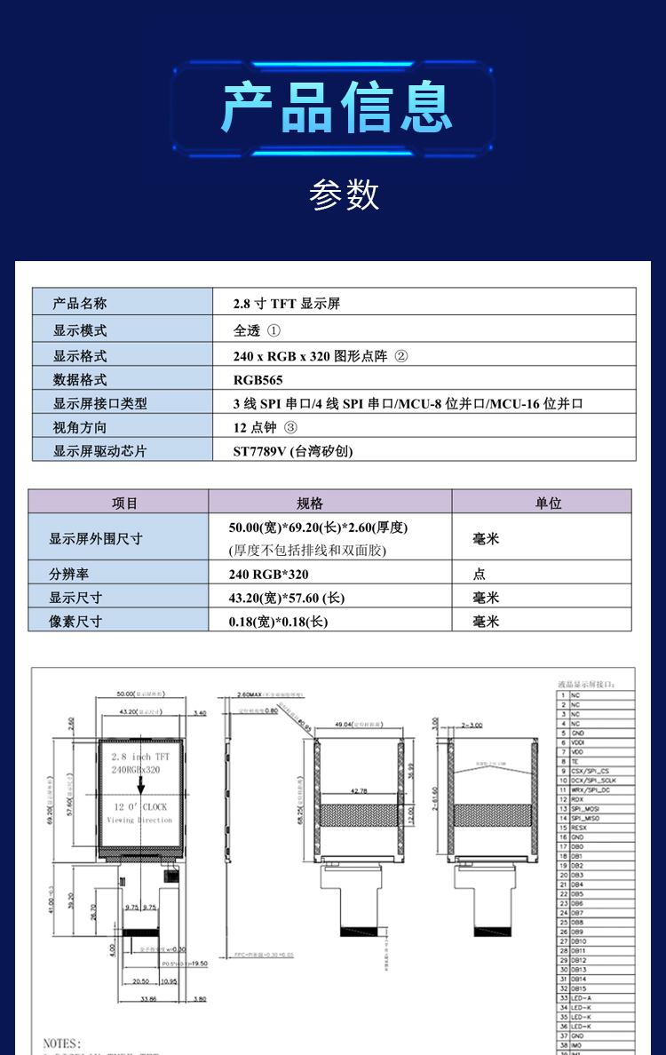 • 亦亞徽2.8寸E28006S工業顯示屏ST7789液晶彩屏模組LCD