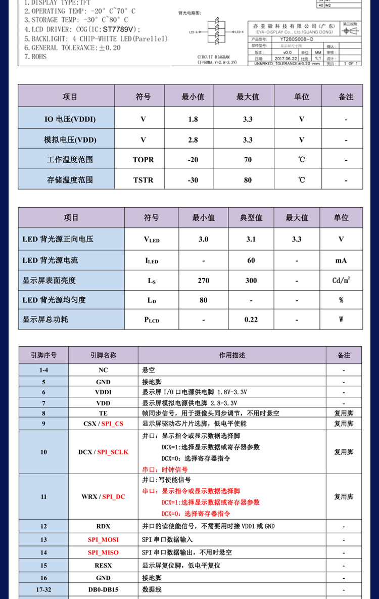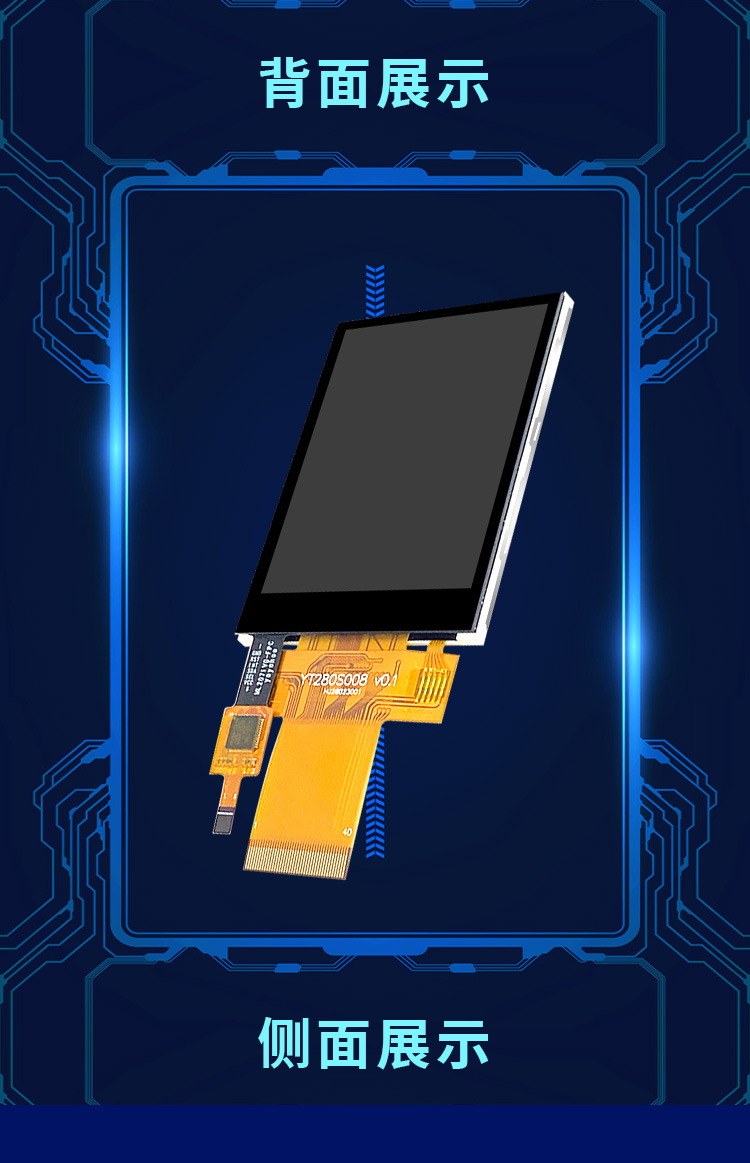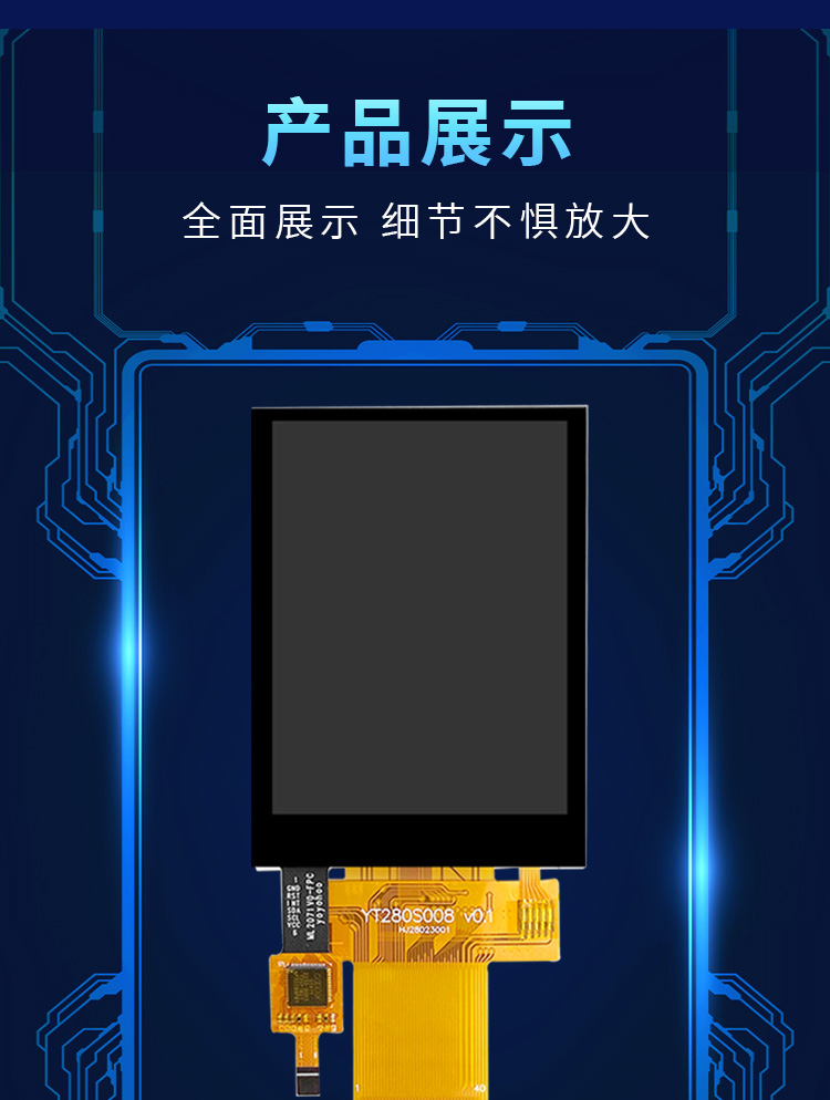 YT280S008是一款2.8寸的TFT液晶屏,我是一款標準插接40Pin,間距為0.5mm的手持設備顯示屏,分辨率是240*RGB*320,我的接口類型兼容了8位并口/16位并口/3線SPI/4線SPI。是一款12點鐘的TN型液晶屏。我有不帶觸摸和帶電阻觸摸以及帶電容觸摸三種形態,我有ILI9341和ST7789V兩種芯片可選,并且我這種標準接口還涵蓋了多種尺寸,需要我的更多信息請聯系我的主人亦亞徽哦。