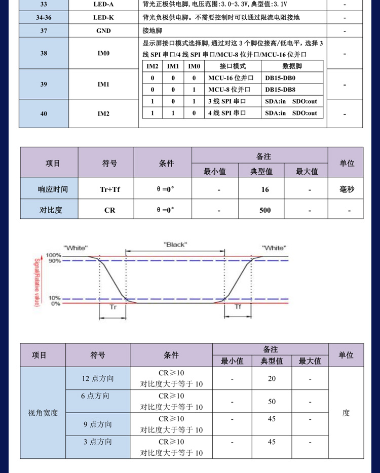 接口類型 兼容8位/16位/3線SPI/4線SPI