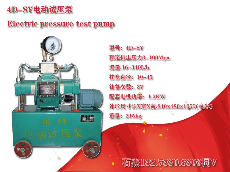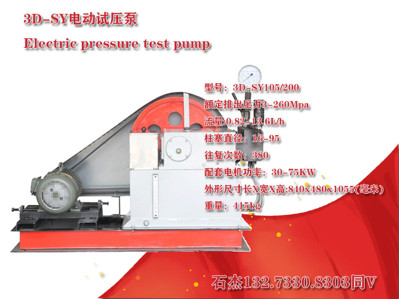 3D -SY大流量電動試壓泵結構小巧緊湊用起來合理、整體機器重量輕、維修方便、防銹等特點,以及采用銅芯電機驅動提高工作效率。