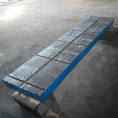 鑄鐵焊接平臺規格:100*100---2000*6000mm,常規規格的產品面板是平面,適合重量不是很大的工件焊接工作,如果重量過大或者要求平臺上面開T型槽,就要定做加厚的焊接平臺,T型槽的尺寸按照國家的標準進行生產。