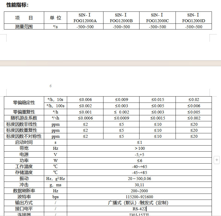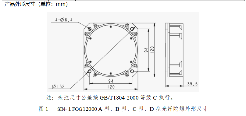 • SIN-ⅠFOG12000系列A型、B型、C型、D型光纖陀螺