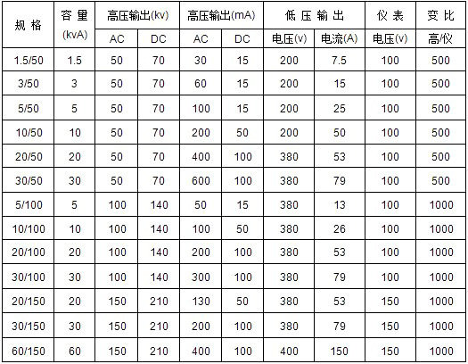 3、表格中“直流高壓輸出”一欄,為交直流兩用試驗變壓器的直流高壓輸出值;