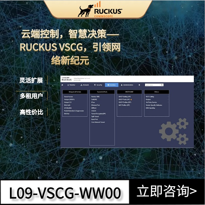 RUCKUS vSCG(Virtual SmartCell Gateway)虛擬網絡控制器是優科無線公司(Ruckus Wireless)推出的一款業界領先的電信級虛擬無線網絡WLAN控制器。以下是關于RUCKUS vSCG虛擬網絡控制器的詳細介紹: