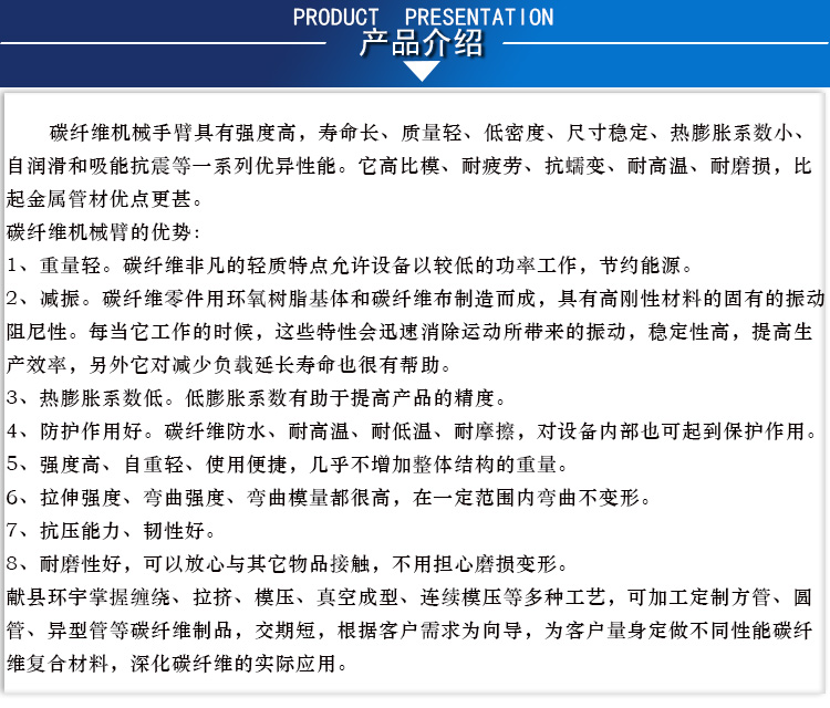 高強度碳纖維機械手臂 環宇碳纖維復合材料生產廠家
