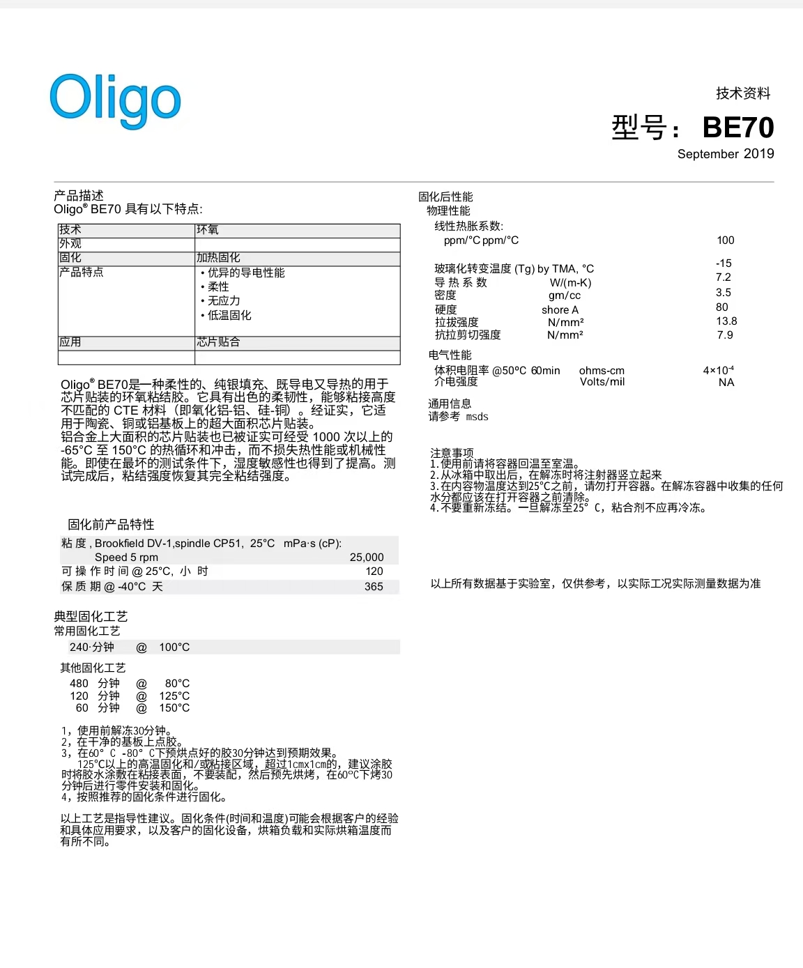 OligoBE70低應力柔性可返工環氧導電銀膠